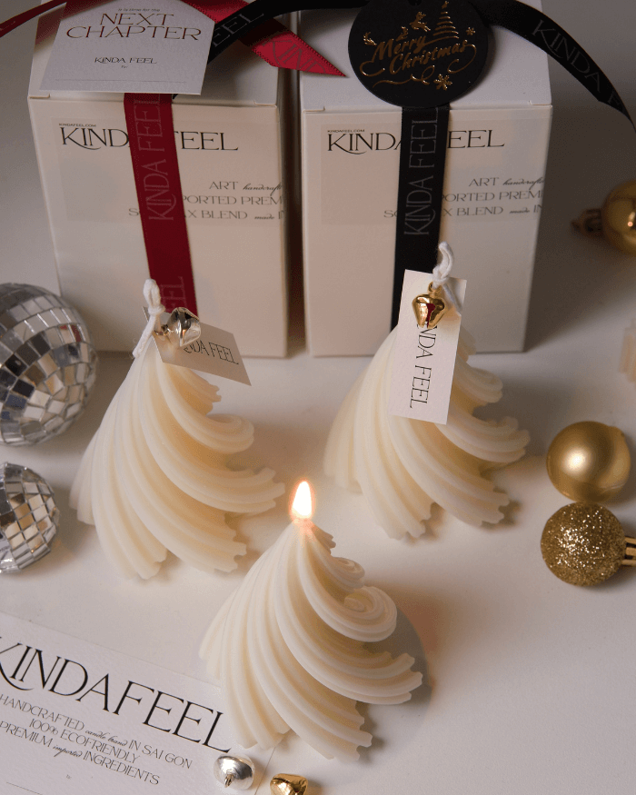 Với 2 tuỳ chọn tông màu gói quà: Đen gold hoặc đỏ silver, Big Tree cao 11cm, được tạo hình cách điệu tựa như cây thông Noel. Với đường nét sắc sảo, uốn lượn, đây nhất định là mẫu nến phù hợp để trang trí bàn ăn, không gian sống nhà bạn cho dịp Giáng Sinh đấy!